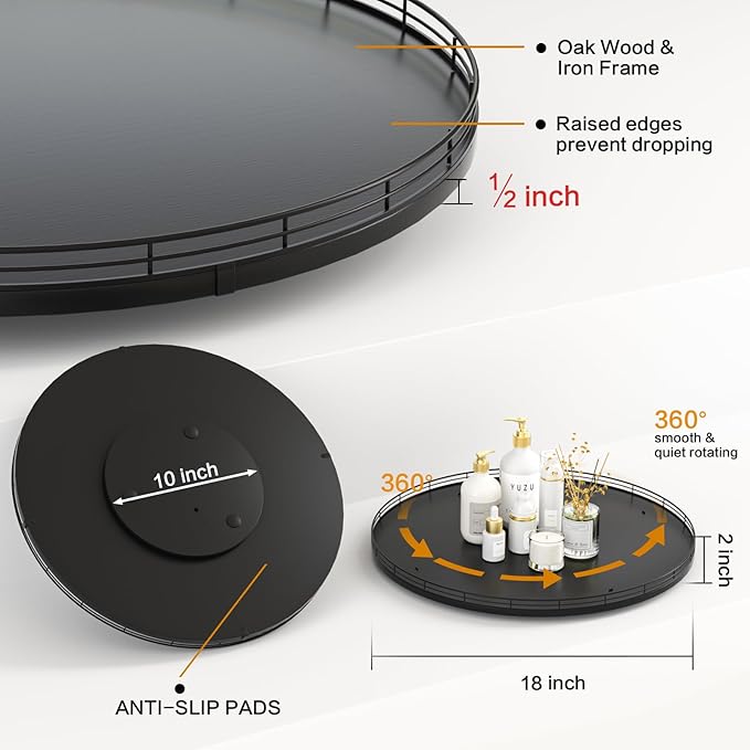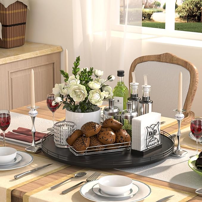 18" Oak Wooden Lazy Susan Turntable for Dining Table, Large Round Lazy Susans Organizer for Kitchen Countertop, Tabletop 360ยฐRotating Tray for Spice Organization and Storage Black Home Decor
