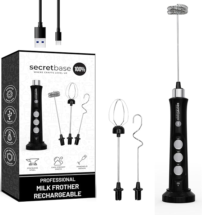 - Rechargeable For Reliable Power: Let’s face it. Battery-operated frother chew through batteries like snacks. Secretbase rechargeable wand eliminates the hassle and cost of constantly replacing batteries. Plug it into a wall charger, or computer, and you’ve got lattes at your fingertips.