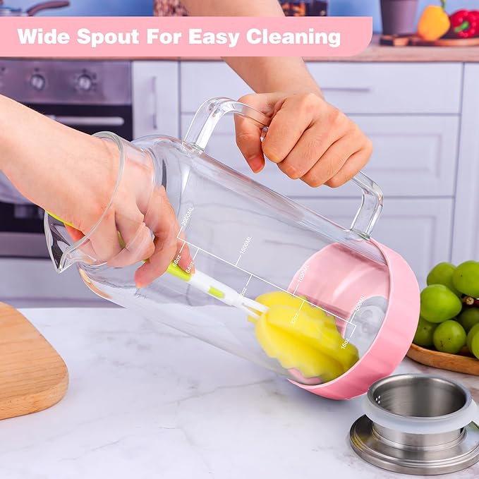- COMFORT-FIRST DESIGN: With your comfort in mind, the jug boasts a thick ergonomic handle for a secure grip, making pouring effortless without straining your wrist. The wide-mouthed spout is easy to clean, and we also provide a long-handled brush for your convenience.
