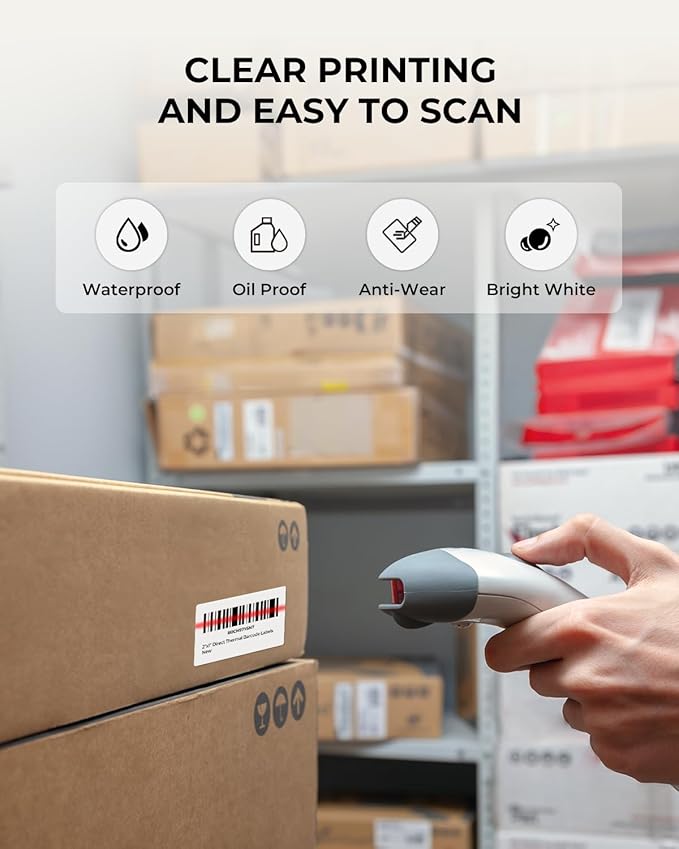 - High-Quality Printing: Munbyn 2x1 thermal labels paper produces clear and crisp prints, with strong self-adhesive, waterproof, and oil-proof properties. It also has a writable surface, making it an excellent business and personal assistant