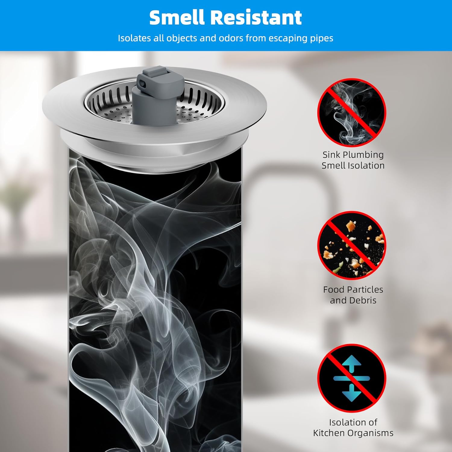 - Upgraded Pop-up Stopper & Drain Quickly: The pop up kitchen sink drain stopper is equipped with upgraded one-piece spring-loaded design; With just one press, you can easily switch between water storage and fast drainage strainer; Responsive bounce design for effortless pressing which is suitable for various settings including kitchens, restaurants, hotels, and canteens etc