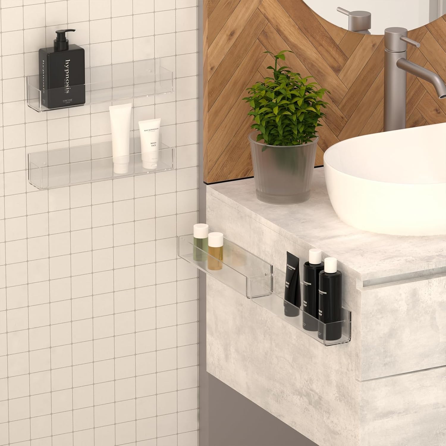 WUIVIUT Invisible Acrylic Wall Spice Rack Adhesive wall mounted rack organizer 11.8 inch spice shelf holder Drilling or self-adhesive organizer rack (Clear-4 Pack)