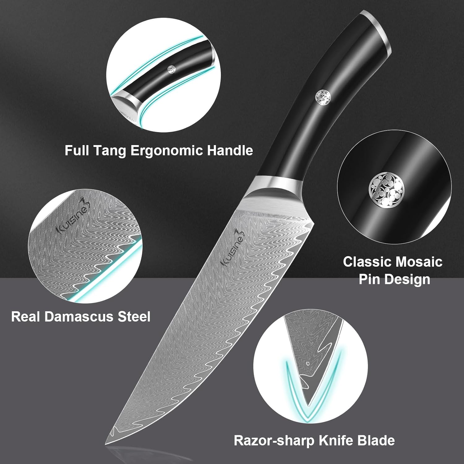 - Keep Sharper Stay Longer:Kuisine sharp knife set is forged with the 15 degree v-shape blade by modern technologies and advanced processes, which make it sharper and stay longer, giving you a splendid cooking experience.