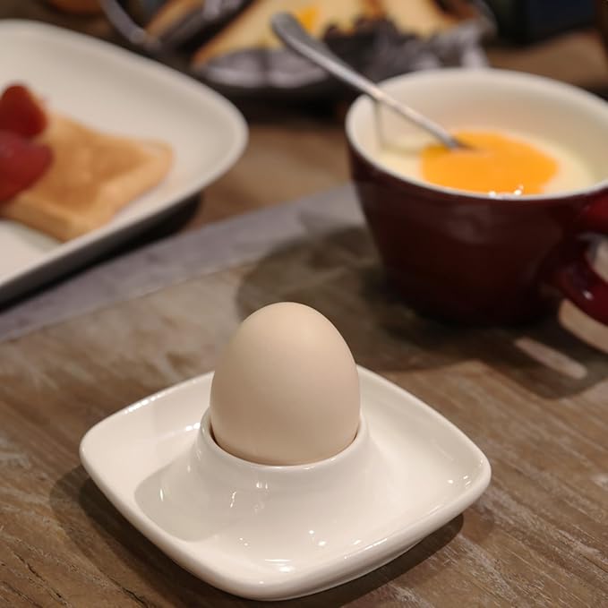 - Use these practical and stylish ceramic square cups to keep your eggs upright, allowing you to serve and eat boiled eggs without making a mess.