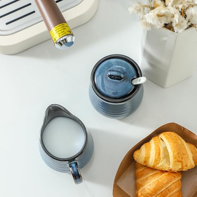 - Vibrant Navy Blue: Stand out with Glowworm sugar and creamer set, boasting a vibrant navy blue that adds a sophisticated touch to any dining table, kitchen, or coffee bar. This creamer pitcher not only serves as a practical utensil but also as a decorative piece that elevates the aesthetic of your space.