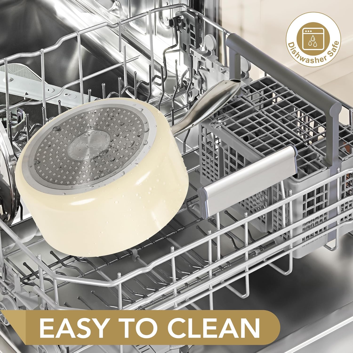MICHELANGELO 3 Quart Saucepan with Lid - Non Toxic Sauce Pan with Nonstick Ceramic Coating, Scratch-Resistant, Induction Saucepan Suitable for All Stovetops, Beige