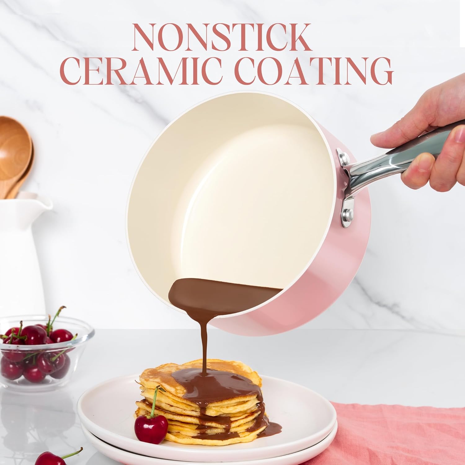 MICHELANGELO 3 Quart Saucepan with Lid - Non Toxic Sauce Pan with Nonstick Ceramic Coating, Scratch-Resistant, Induction Saucepan Suitable for All Stovetops, Pink