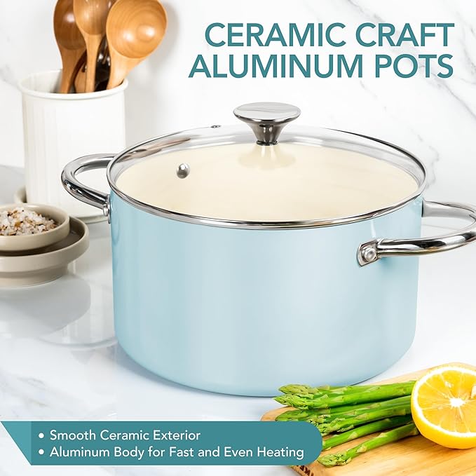 - Healthy & Non-Toxic Cooking: Our ceramic-coated stockpot is free of PFOA and PFOS, ensuring no harmful substances are released during cooking, allowing you to prepare meals with peace of mind for your family.