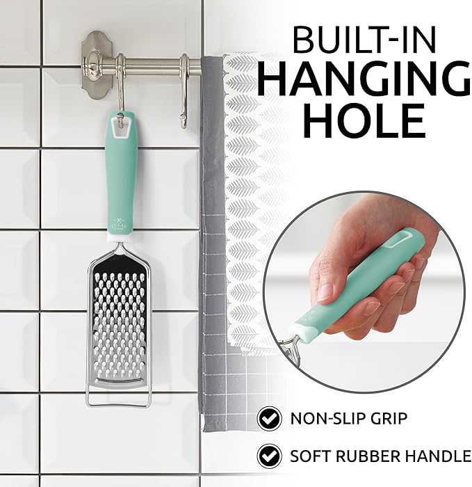 Zulay Kitchen Professional Cheese Grater Stainless Steel - Durable Rust-Proof Metal Lemon Zester Grater With Handle - Flat Handheld Grater For Cheese, Chocolate, Spices, And More - Mint