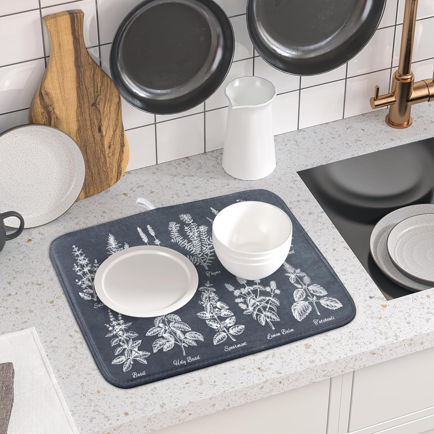 - 【Wide Usage】The dish drying mat designed with wild botanical pattern, it is beautiful, soft, and durable. Not only a dish drying mat, cup mat, heat resistant mat, you can also use it as a kitchen countertop insulation mat. It is also a good choice to use it as a pet mat, picnic mat.