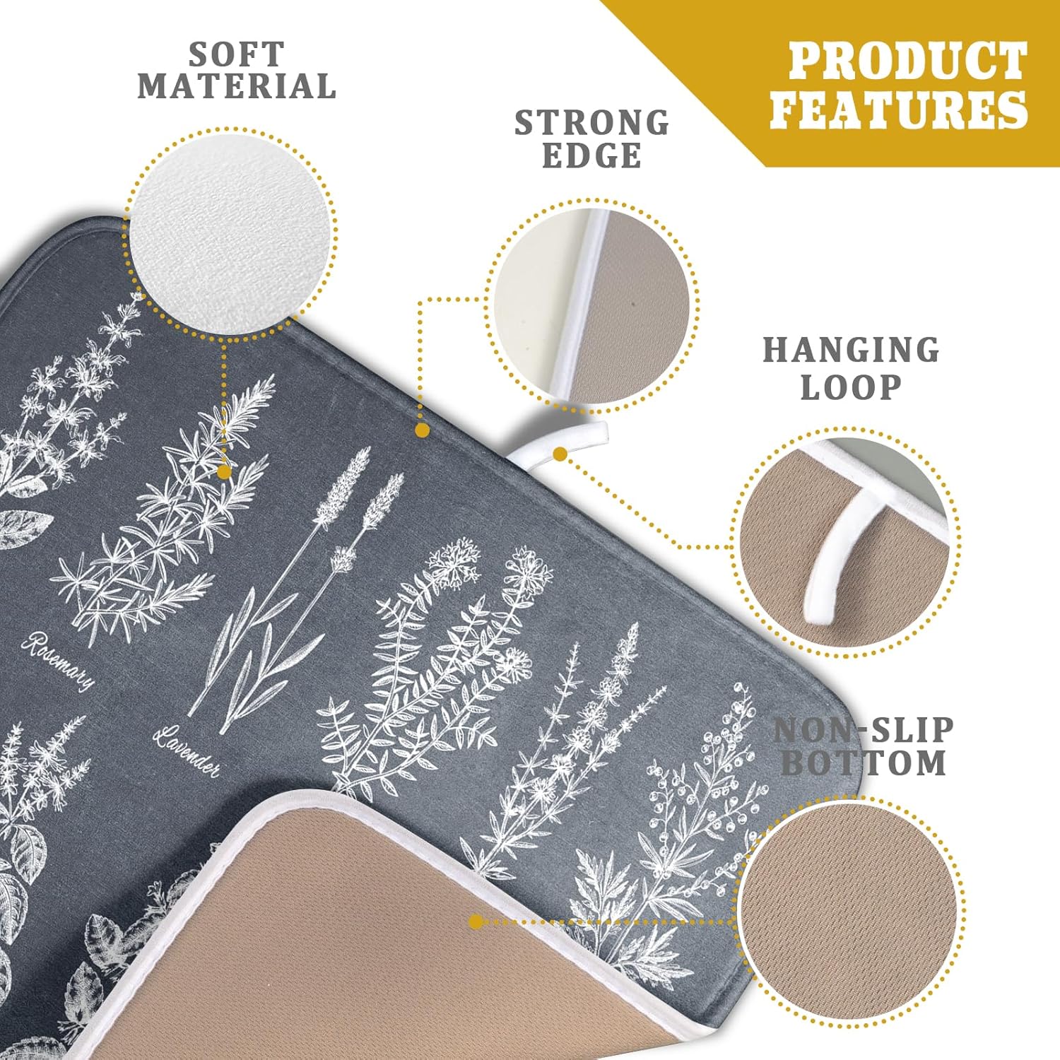 Flower Herbs Dish Drying Mat Wild Plant Dish Rack Mat with Hanging Loop Fast Dry Dish Drainer Pad for Kitchen Counter Sink 16x18 Inch