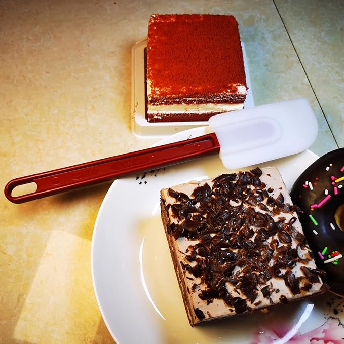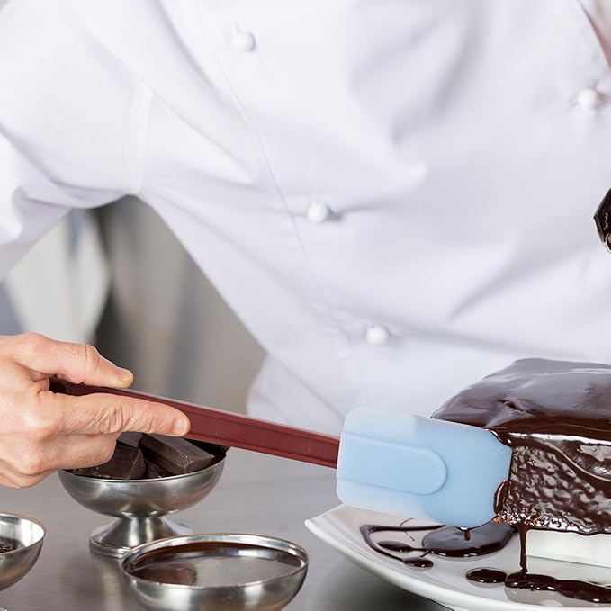 - STURDY & FLEXIBLE: This high heat spatula set, is sturdy to stir sticky dough, and soft on the edges to cleanly scrape batter or button from your bowl; Edges of these rubber spatulas are thin and flexible, working fine at scraping, perfect to reach the bottom of mixer bowls (which have high sides) without getting your hands sticky. Gentle but durable and strong, these commercial grade rubber spatulas can serve for years with no need for special care.
