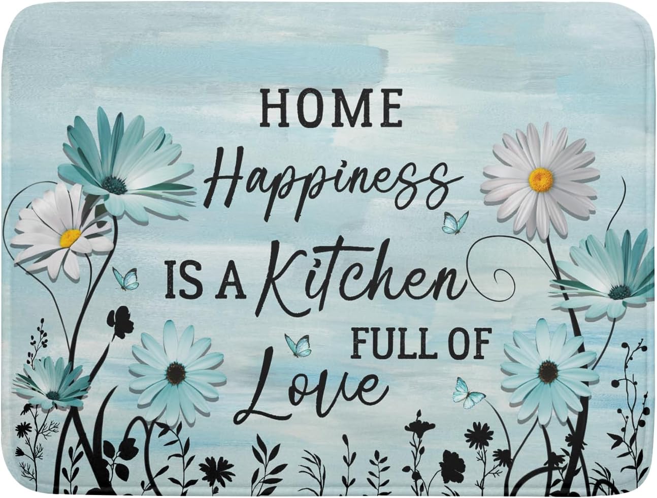 Blue Daisy Dish Drying Mat 18x24 Inch Love Kitchen Absorbent Microfiber Washable Fast Drying Pad Dishes Rack Mat for Kitchen Counter