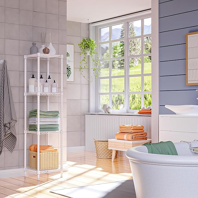 - IMPACT & SPACE SAVING: With its delicate design, this storage shelving is designed for small spaces. Meanwhile, it has multiple metal shelves, which can create more vertical storage space, perfect for narrow spaces or corners.