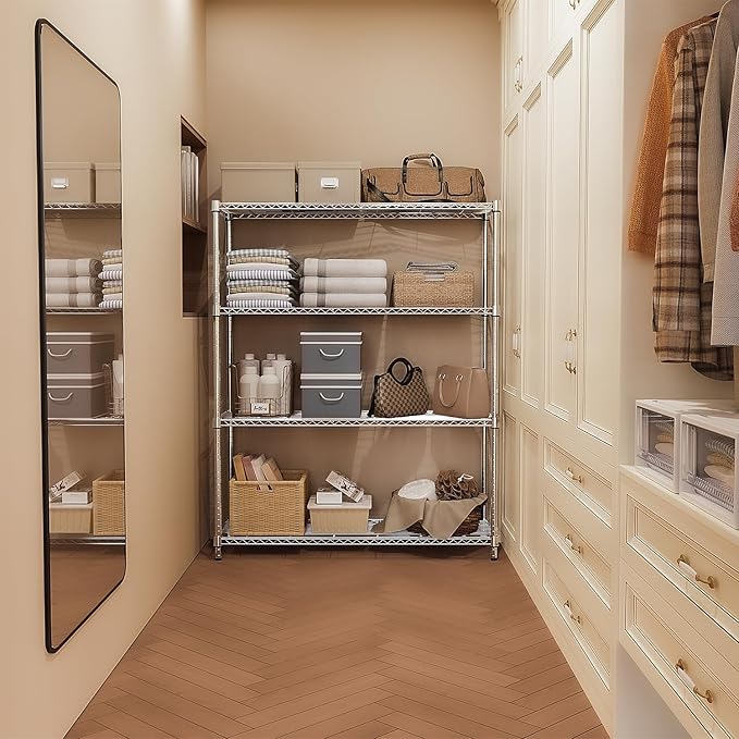 5-Shelf Storage Shelves,Wire Shelving Heavy Duty Metal Storage Shelving Unit Adjustable Garage Shelving Rack Pantry Kitchen (Chrome, 4 Tier,15.8" D x 45.3" W x 59.4" H)