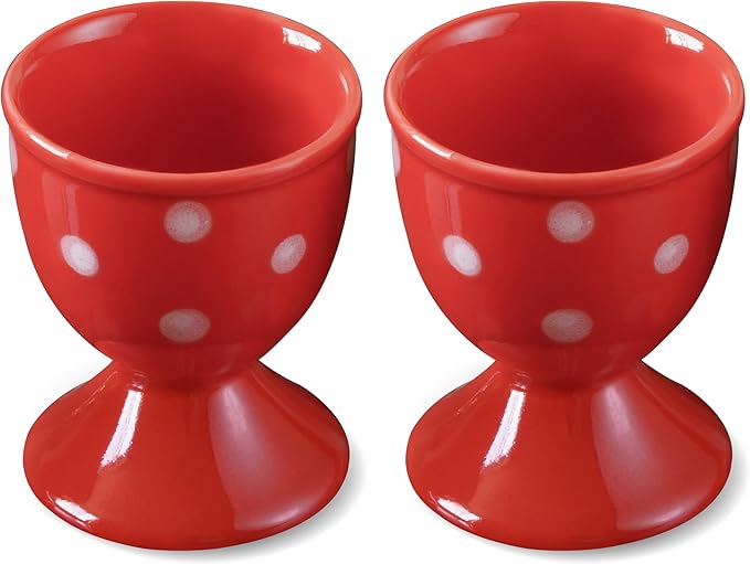 Cinf Easter Ceramic Egg Cup Red Set of 2 Porcelain Holder Breakfast Boiled Cooking Easy to Clean Childhood Memories Kitchen