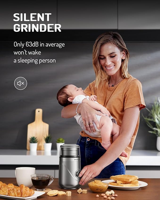 - 【Quieter than Other Competitors】The average noise is 63 dB, which is quieter than other coffee grinders. Getting up early and grinding coffee beans without disturbing your families sleep in the morning.