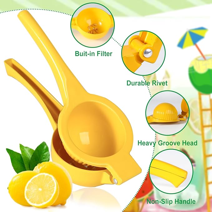- [Easy to Extract] The lemon squeezer is designed with a long handle and heavy presser, so that you can manual the juicer process easily, even the children can squeeze the fruits easily.