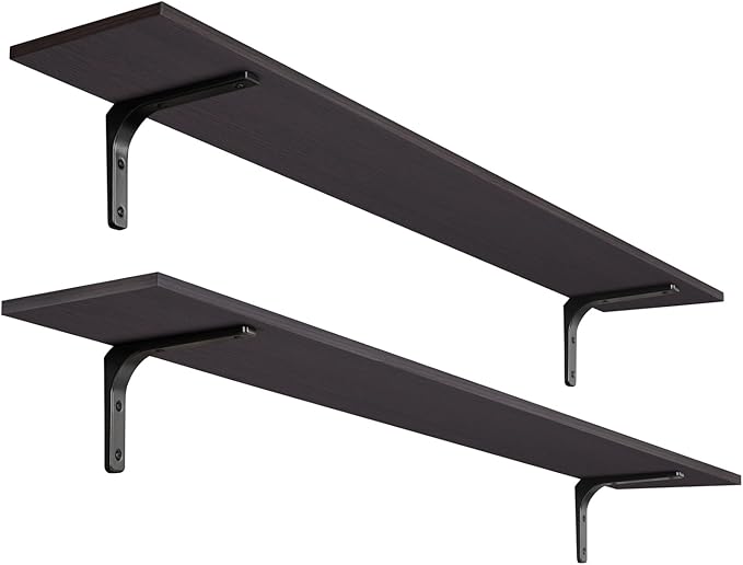 DINZI LVJ Long Wall Shelves, 55.1Inch Floating Shelves Wall Mounted, Extra Large Floating Storage Ledges with Sturdy Metal Brackets, Set of 2, for Living Room, Bathroom, Entryway, Kitchen, Espresso