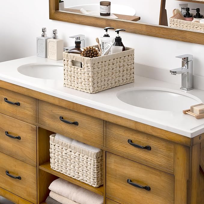 - Design for Convenience: Each rattan storage basket features 2 handles, convenient for transportation, ideal to use as storage baskets for organizing bathroom.