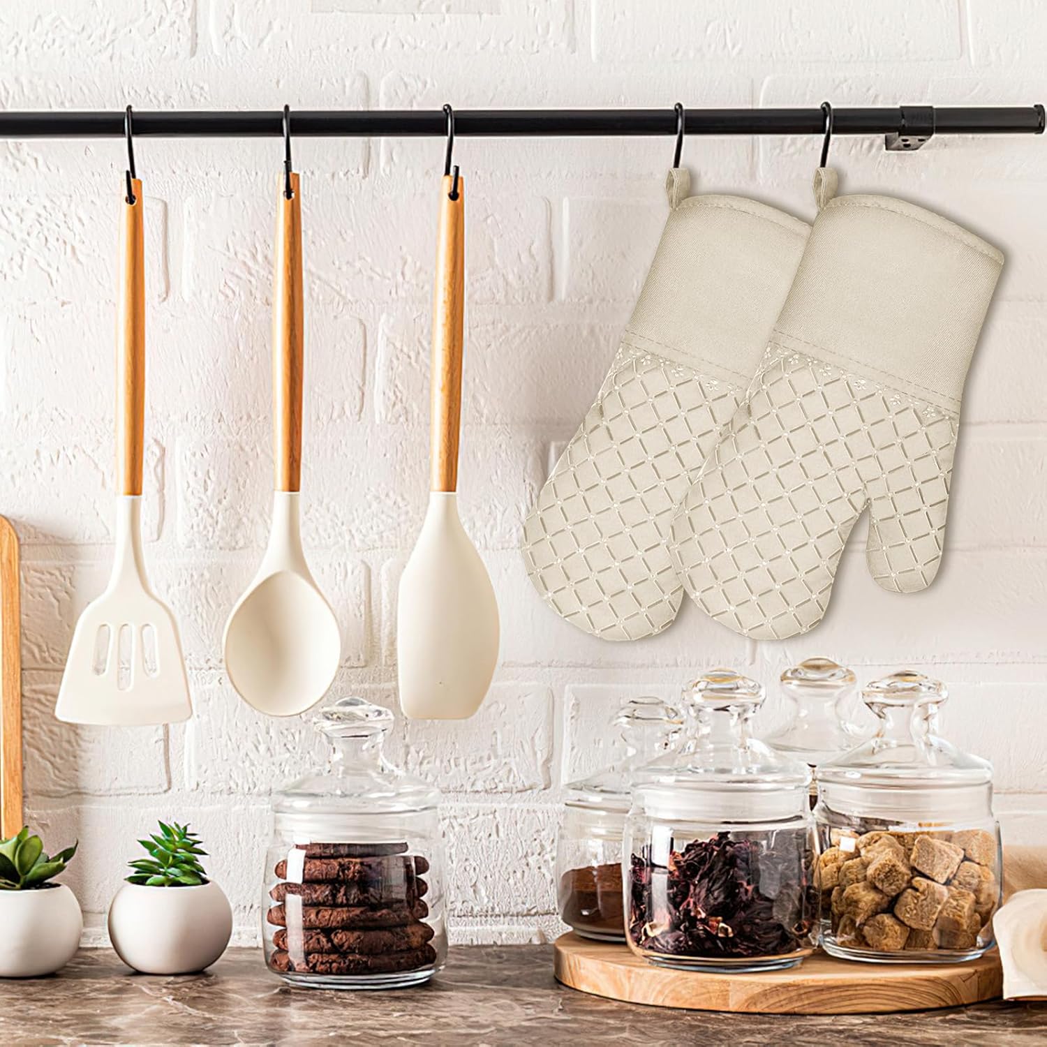 - 【Heat Resistant Up to 500 °F】Our high-quality oven mitts and pot holder set is heat-resistant up to 500 °F. Whether you're taking a casserole dish out of your oven, taking a pan out of your oven, or taking care of your hot grill, you can be sure that your hands are reliably protected from burns by our oven mitts.