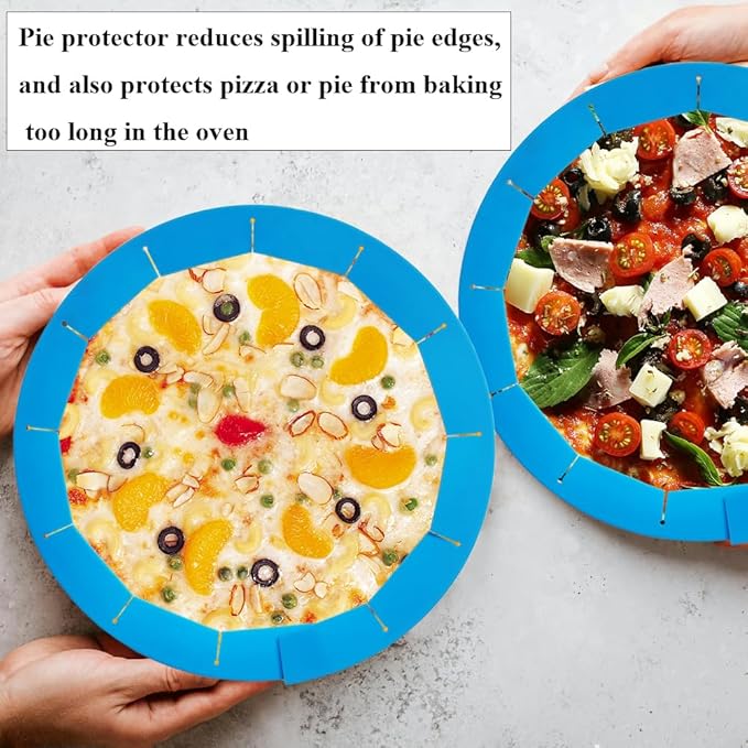 - Heat Resistant Pie Rings for Crust Adjustable: The silicone pie protector can resist heat up to 450 °F which can be perfectly used at extremely high cooking temperatures. The kitchen silicone protector can be adjusted in size to fit 8 inches to 11.4 inches pie or pizza
