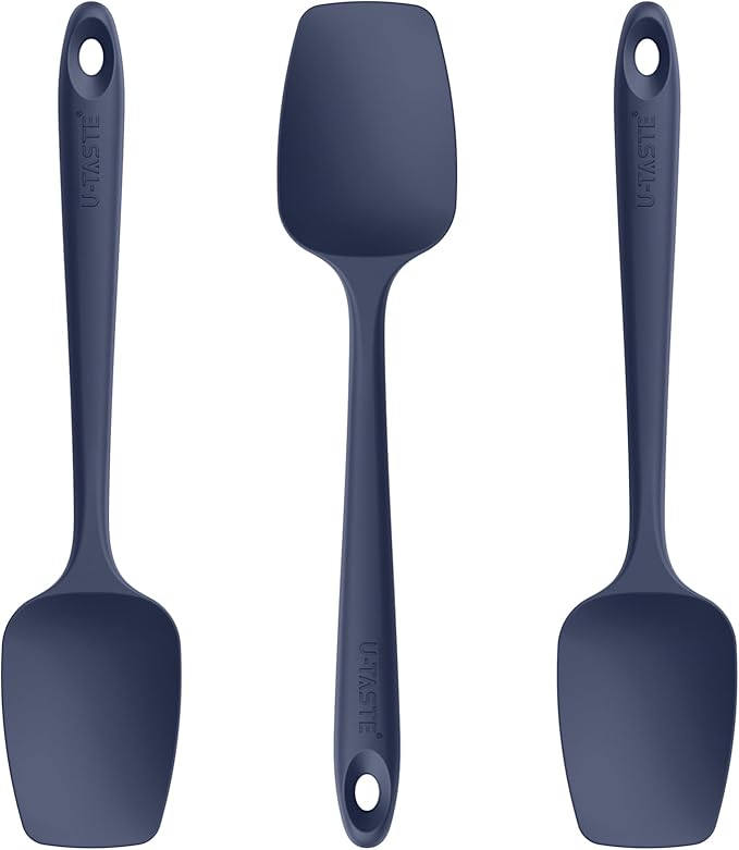 U-Taste Silicone Spoon Spatula Set: 480ºF Heat Resistant Food Grade Flexible Rubber Spoonula, Nonstick Cooking Mixing Scooping Kitchen Baking Scraper Utensils Set of 3 for Pan, Bowl (Midnight Blue)