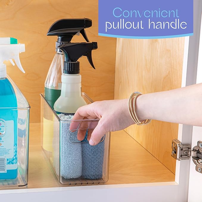 - Easy Visibility and Convenient Handles: The clear plastic design allows you to quickly see and access your stored items without any hassle. Built in grip handles provide a secure and comfortable hold, making it easy to pull out the bin and grab what you need. The open top design adds conveniece, perfect for busy families, organizers and anyone looking to organize their space.
