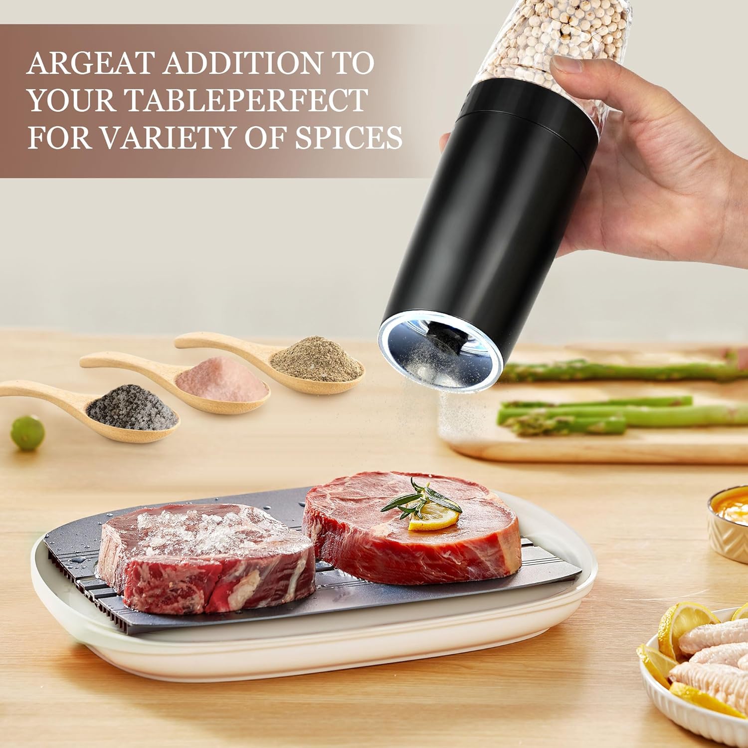 Gravity Electric Salt and Pepper Grinder, Automatic Pepper Mill, USB Rechargeable, Adjustable Coarseness, One-handed Operation, Ceramic Burr, Refillable, Auto Grinders with LED Light