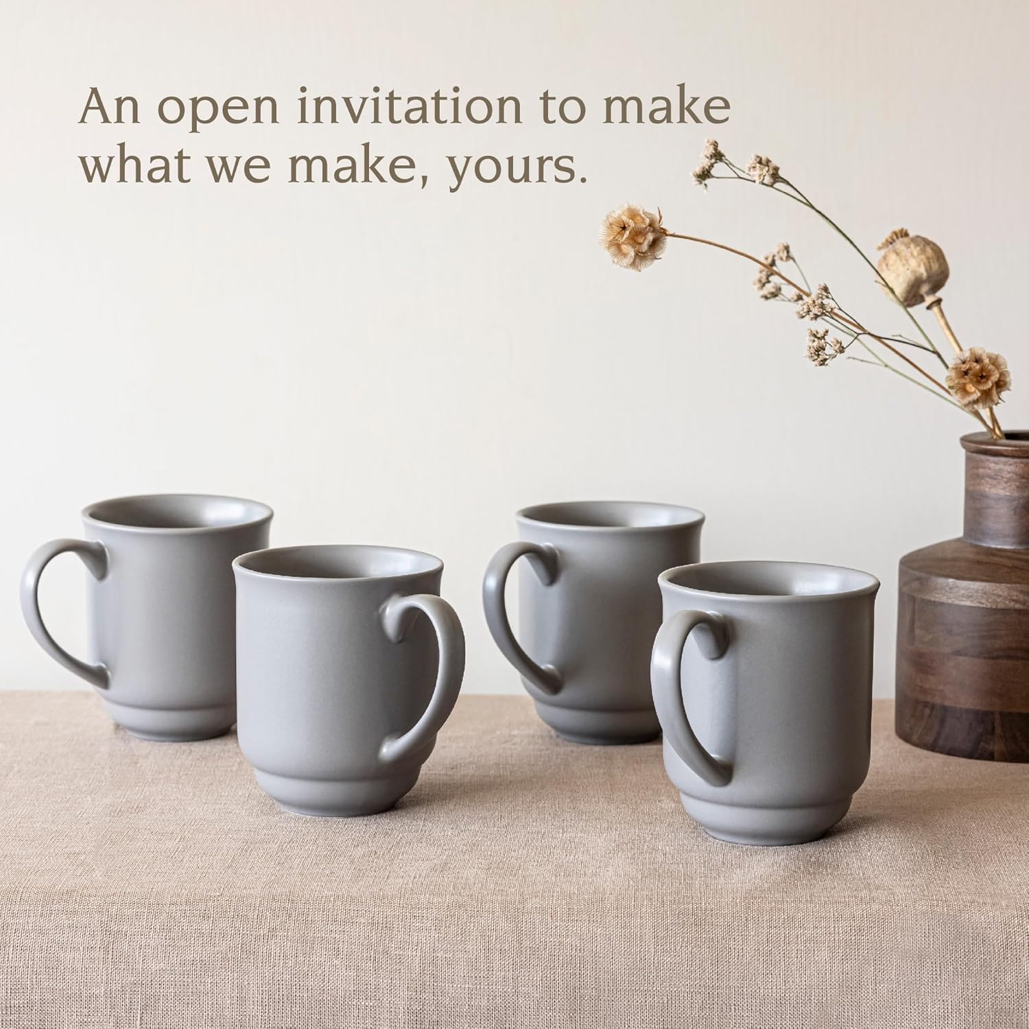 - RIM DESIGN: Boasting a traditionally elegant profile, our stoneware coffee cups easily pair with every other piece in the collection. Add any of our dinnerware sets, serving bowls, or mugs for an effortless, custom tablescape.