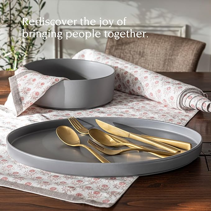 - STACKABLE DESIGN: Showcasing a sleek, modern profile, our large serving plate easily pairs with every other piece in the collection. Add any of our dinnerware sets, serving platters, bowls, or mugs for an effortless, custom tablescape.