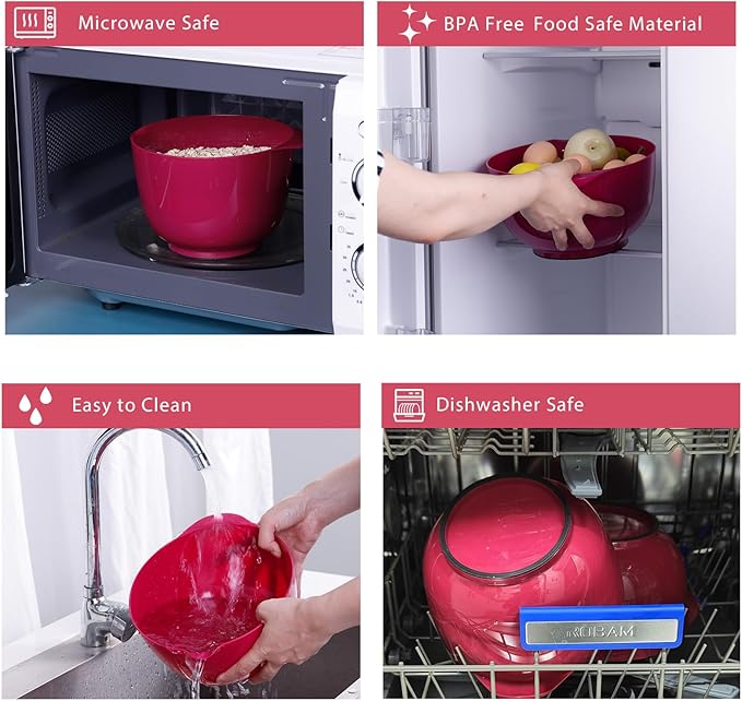 - 【Non-Toxic & Food Safe Material】Our mixing bowl is made of food-grade material, BPA-free and odorless, ensuring the absolute food safety in prepping, washing, baking, mixing and serving. Safe for use in microwave. Note: Please do not overheat as it may shorten the product life. (Temperature Resistance: -20℃~90℃/-4℉~194℉)