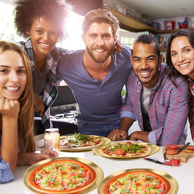 Thenshop 8 Pieces 12 Inch Pizza Pans Bulk Stainless Steel Sets Round Bakeware Pizza Trays for Oven Kitchen Baking Home Restaurant Safe Sturdy Reusable Easy Clean(Gold)