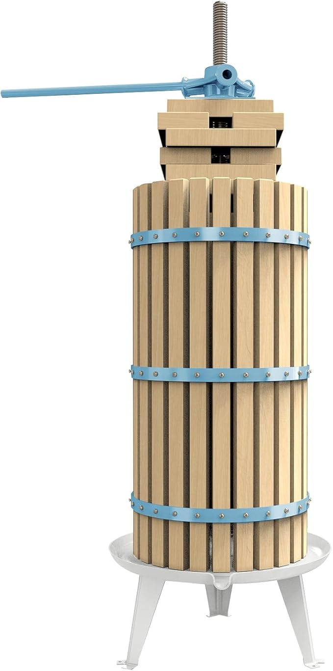 SQUEEZE master XL Fruit Apple Cider Wine Classic Press-Blue-7.9 Gallon/30L-Solid Wood Basket-Vintage traditional juicer-Pole Handle Bar for Juice,Wine,Cider-1 free filter bag included