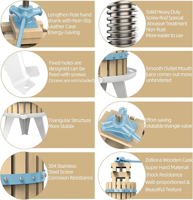 SQUEEZE master Fruit Apple Cider Wine Press-Blue-3.17 Gallon/12L-Solid Wood Basket-Vintage traditional juicer-Pole Handle Bar for Juice,Wine-1 free filter bag included