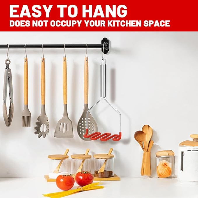 SHIKORI Non-Scratch Silicone Potato Masher Kitchen Tool, Potatoes Masher Potato Masher Stainless Steel Wrapped In Premium Silicone, Potato Smasher 2 Pcs-Red