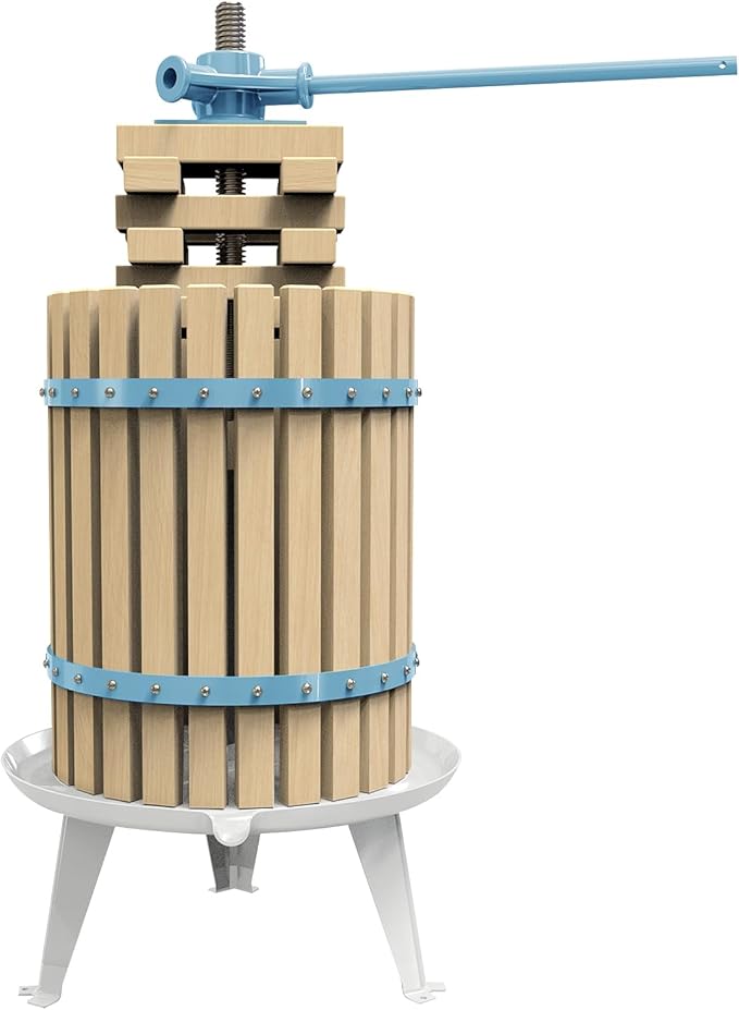SQUEEZE master Fruit Apple Cider Wine Classic Press-Blue-4.75 Gallon/18L-Solid Wood Basket-Vintage traditional juicer-Pole Handle Bar for Juice,Wine,Cider-1 free filter bag included