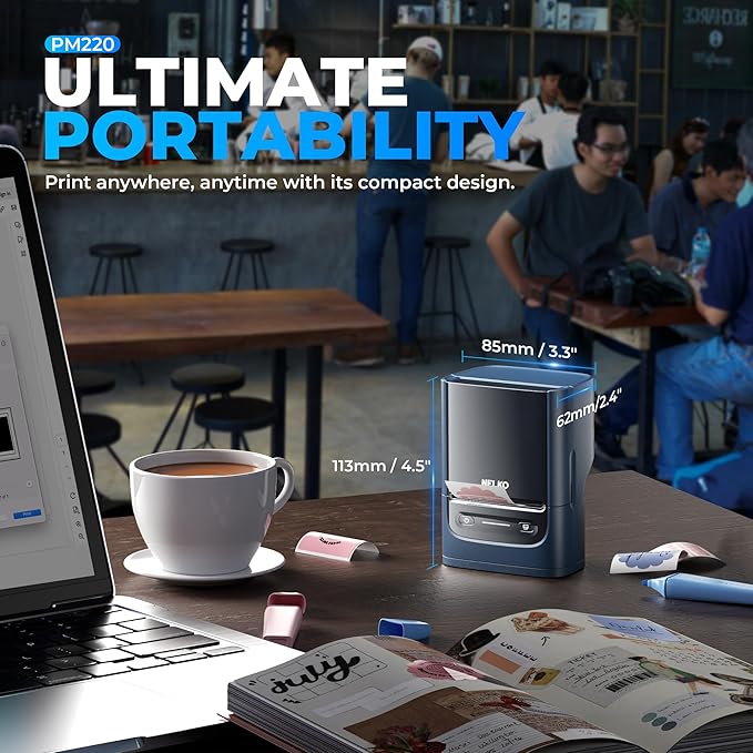 - Portable- PM220 label maker machine with tape compatible with smartphone & PC. Easily connect label printer to your smartphone in just 5 seconds for fast and convenient printing, label printer achieves convenient, smooth & fasts printing. Mini compact design, you can bring this portable label maker machine with tape to anywhere.(Note: charging adapter not included, not suitable for fast charging adapter.)