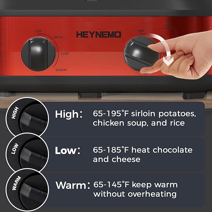 - 【Tailored Culinary Mastery】With separate buttons designed for each pot, our 2 pot slow cooker enables independent operation, making it effortless for you to simultaneously cook two different dishes. Bid farewell to kitchen chaos and embrace fast, efficient meal preparation!