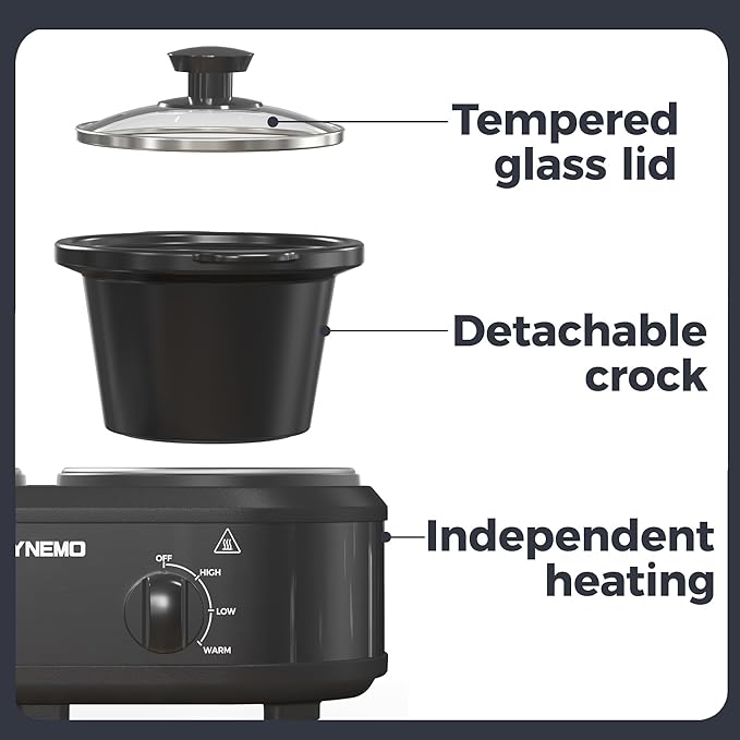- 【Gift-Giving Extravaganza】The dual slow cooker is absolutely perfect for creating gourmet meals for parties and family gatherings! It's also an excellent gift for weddings, housewarmings, Christmas, or for couples starting a new chapter in their lives.2 pots (1.25QT capacity each)