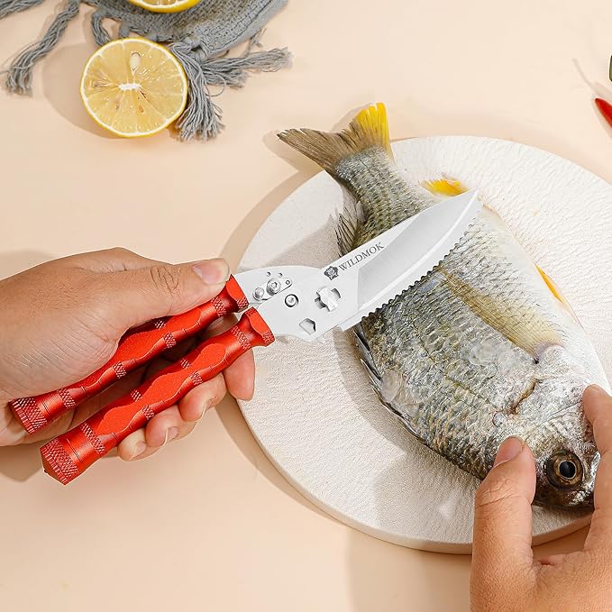 WILDMOK Heavy Duty Poultry Shears - 8.5 Inch Multi-function Stainless Steel Poultry Outdoor Shears, Ultra Sharp Kitchen Scissors for Outdoor Camp, Red