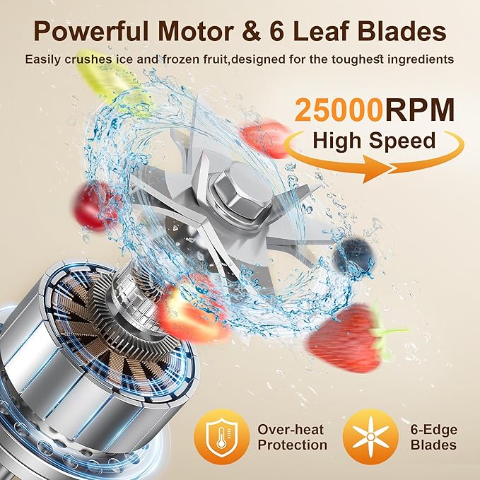 - [Powerful Blenders for Kitchen]: PRASKY blender for smoothies with powerful 3.0-hp motor which reaches speeds of up to 25000 RPM/min, faster and stronger, Blenders feature an enhanced 6-leaf sharp blade which can easily crush ice cubes, vegetables and fruits.Powerful blender for smoothies and shakes are effortlessly available with just a twist.