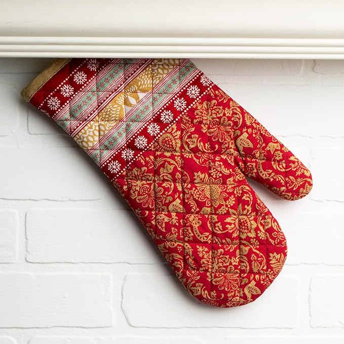 Maison d' Hermine Oven Gloves 100% Cotton Oven Mitt 7" x 13" with Loop Heat Resistant, BBQ, Cooking Gloves, Baking, Grilling, Kitchen, Handling Hot Pans (Pack of 1, Sofia)
