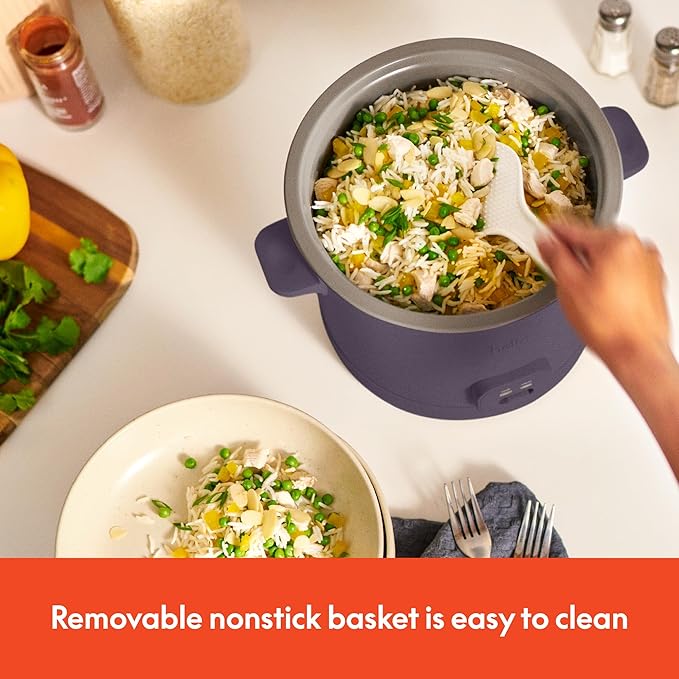 bella 16 Cup Rice Cooker with Steamer, Dishwasher Safe Steaming Basket, Rice Paddle and Measuring Cup, Removable Nonstick Cooking Bowl, Automatic Keep Warm Function, 400 Watt, Plum