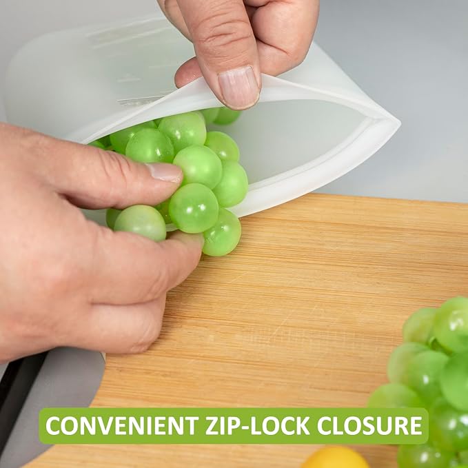 - 【100% SILICONE - SAFE & RELIABLE】Made of 100% food-grade silicone, our snack ziplock bags are PVC, chlorine, phthalates, and BPA-free. Non-toxic and odorless, they offer safe food storage to your family. Designed with durability in mind, their thick material and sturdy construction ensure long-lasting use. Lightweight and convenient for everyday use, they're the ideal storage solution