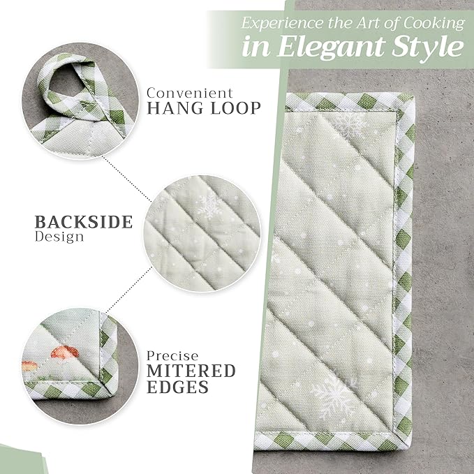- Premium Quality: Crafted from quilted 100% cotton, this heat resistant oven mitt and pot holder set offers comfort, flexibility, and protection from hot cookware. Ideal cotton oven mitts for daily kitchen use and cooking safety