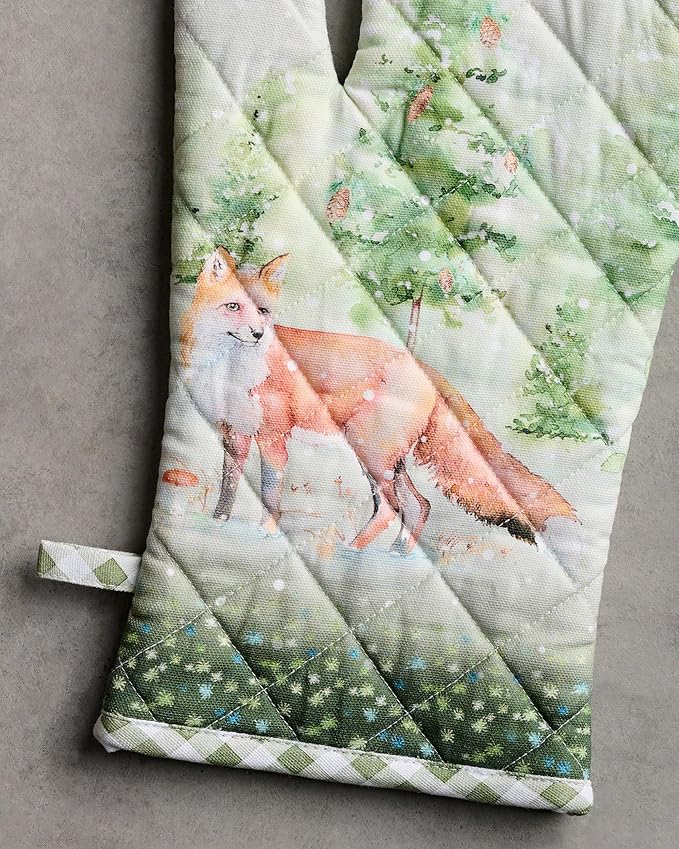 Maison d' Hermine 100% Cotton Oven Mitt & Pot Holder Set (7.5"x13" & 8"x8") Heat Resistant BBQ Cooking Gloves with Loop, Baking, Grilling, Kitchen, Handling Hot Pans (Winter Mornings)