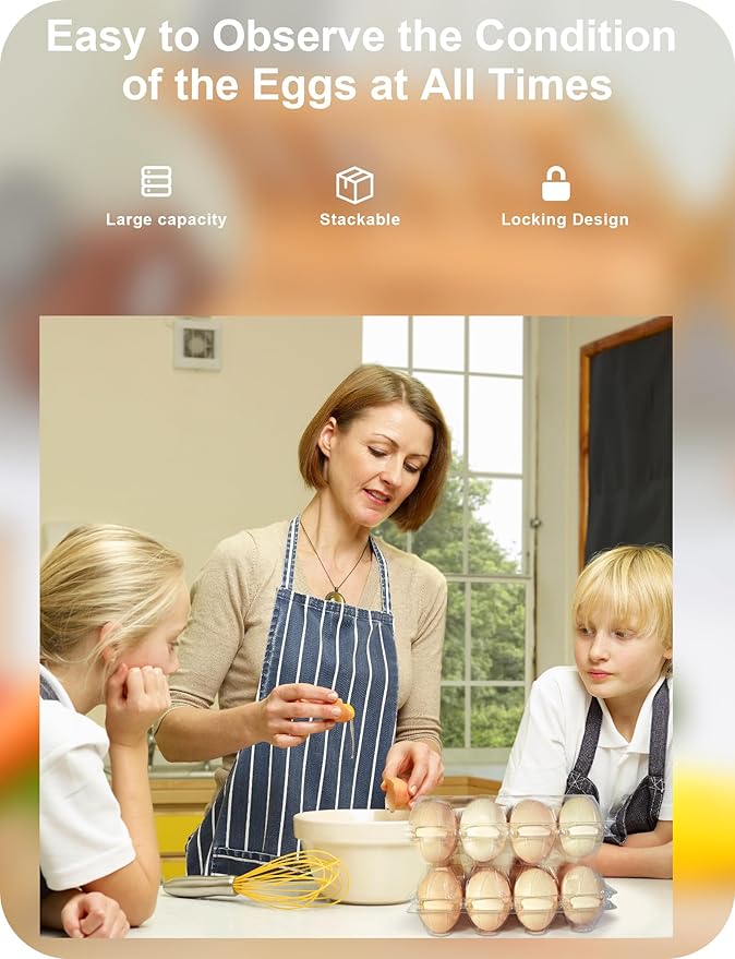 - Clear Visibility: The clear plastic makes it easy to observe the condition of the eggs at all times. Great for storing eggs, produce stands, and grocery stores.
