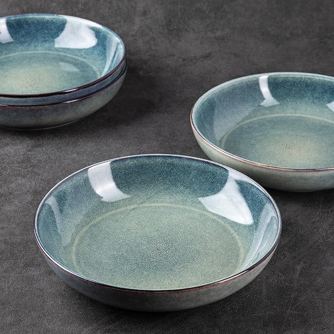 AmorArc 8.5'' Large Ceramic Pasta Bowls Set, 36oz Stoneware Bowls Set of 6 for Kitchen, Reavtive Glaze Bowls-Microwave,Dishwasher Safe for Pasta,Salad,Oatmeal-Ceylon Blue