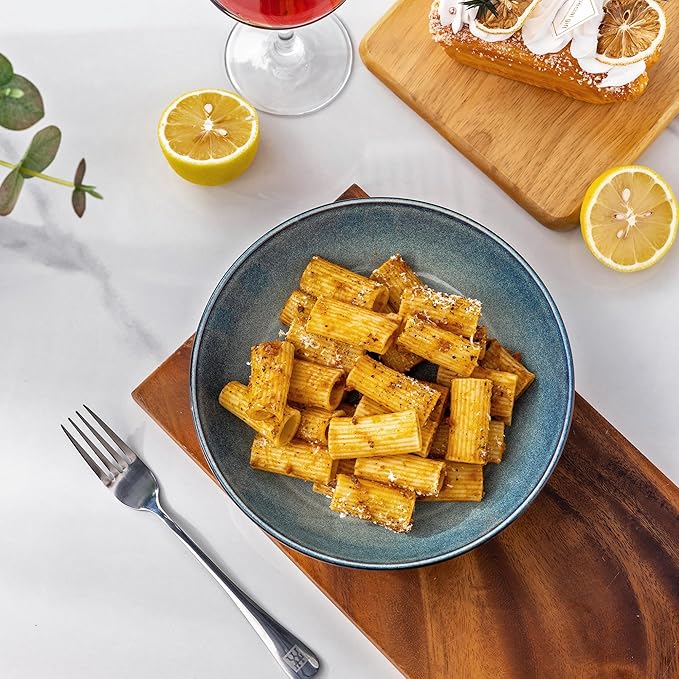 - HEALTHY & EXCELLENT VALUE : These Pasta bowls are made of degradable clay and fired at 2350℉ for 13 hours, making it free of lead and cadmium, NO need to worry about harmful substance leaching into your drinking and food, Twice fired premium ceramic make it sturdy, durable and chip-resistant for long use.